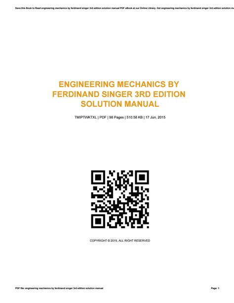 Read Online ENGINEERING MECHANICS SINGER SOLUTION MANUAL Doc